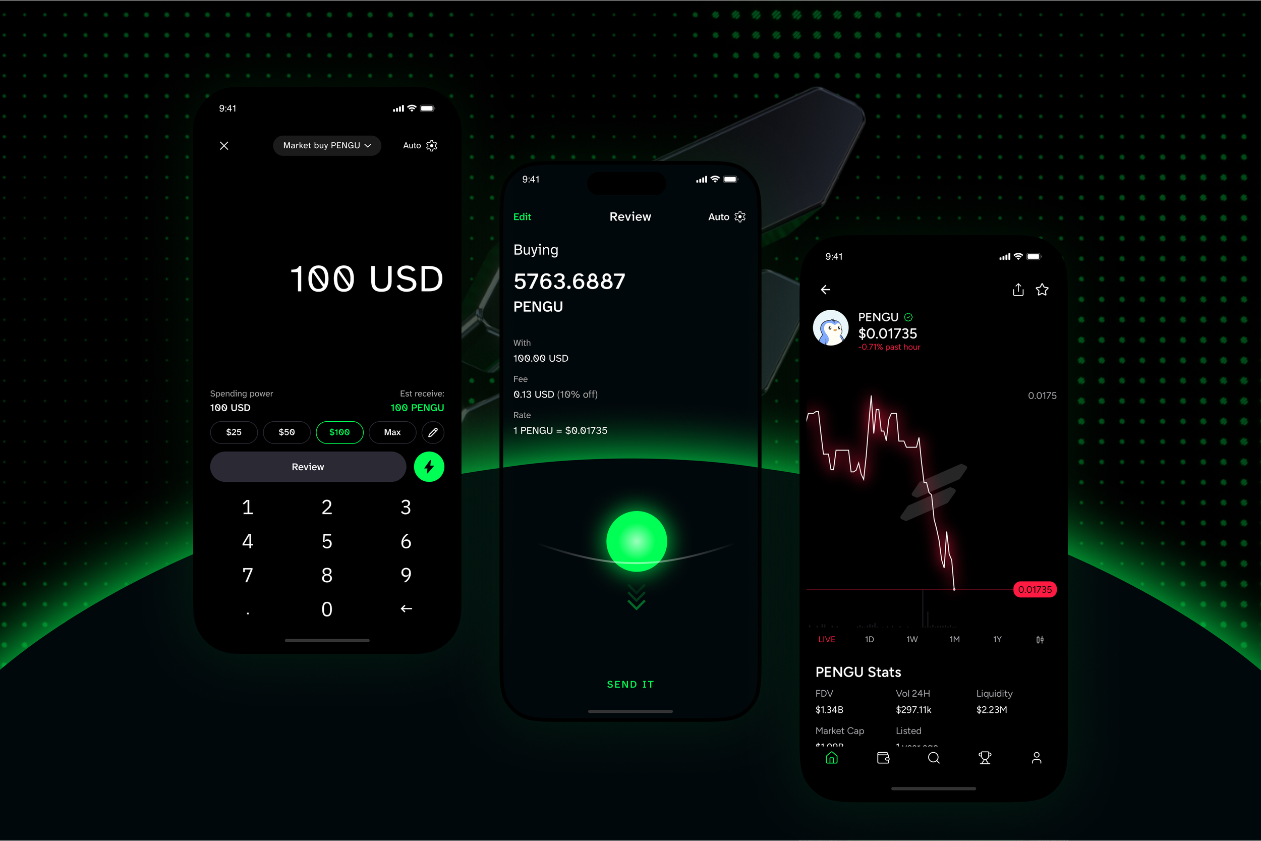 These are the latest designs of the Slingshot App prior to its acquisition by Magic Eden, where I played a key role in the overall design efforts. Major updates included USDC abstraction, an interactive trade pullback animation, a new leaderboard, referral rewards, and a complete Discover section overhaul.